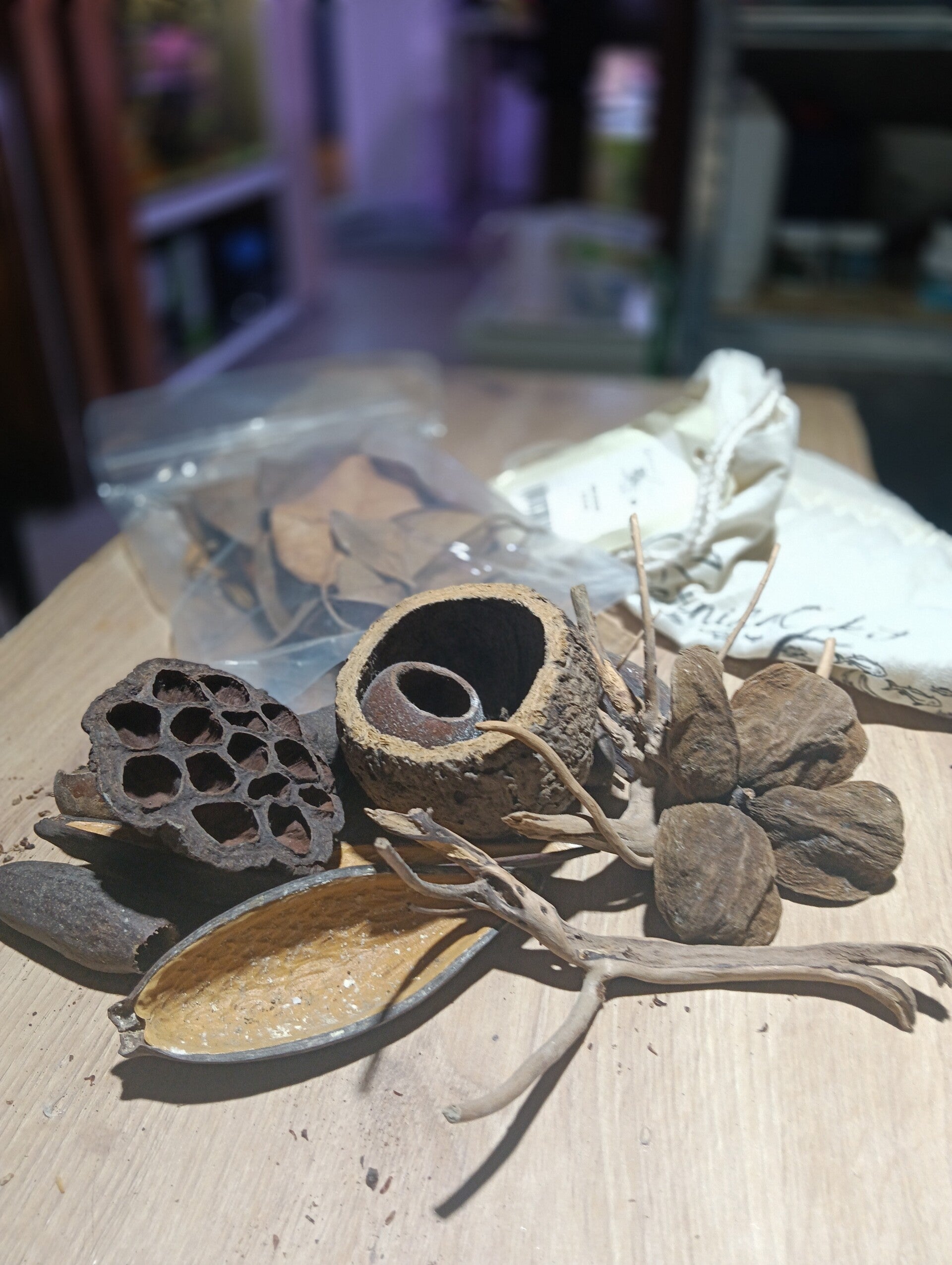 Composto por: 1 flor de sterculia, 15 folhas de magnolia, 1 lotus, 1 noz do Brasil, 10 folhas de catappa, 3 canoinhas, 3 kuchipal e mix de ramos S